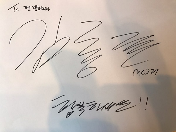 저희 펫갤러리아에 기념싸인도 남겨주시고 기념사진촬영까지!